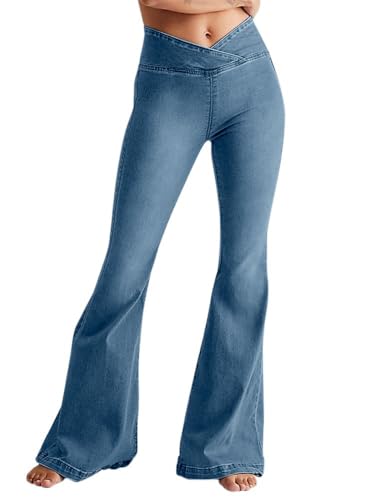 Langwyqu Flare Jeans for Women High Waisted Bell Bottom Stretch Wide Leg Denim Pants