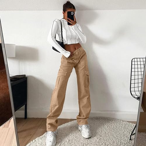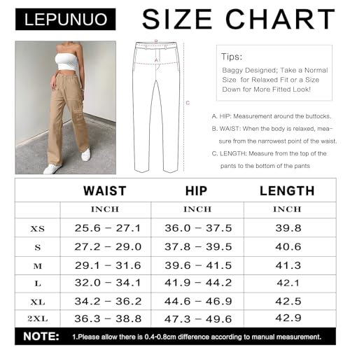 Specification: Lepunuo Cargo Pants for Women High Waisted Casual Pants Baggy Stretchy Wide Leg Y2K Streetwear with 6 Pockets