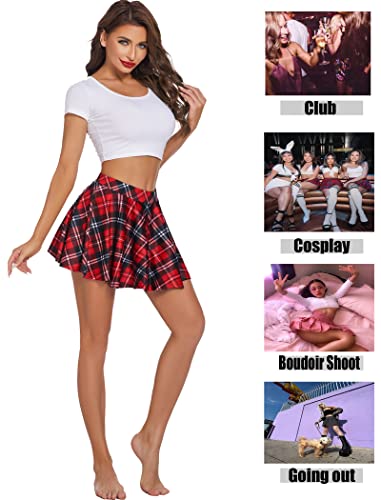 Avidlove Pleated Mini Skirt Plaid Skirts High Waist A Line Skater Skirt for Lingerie Schoolgirl