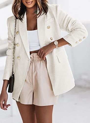 Happy Sailed Womens Tweed Blazers Casual Long Sleeve Double Breasted Open Front Blazer Jackets Work Suits