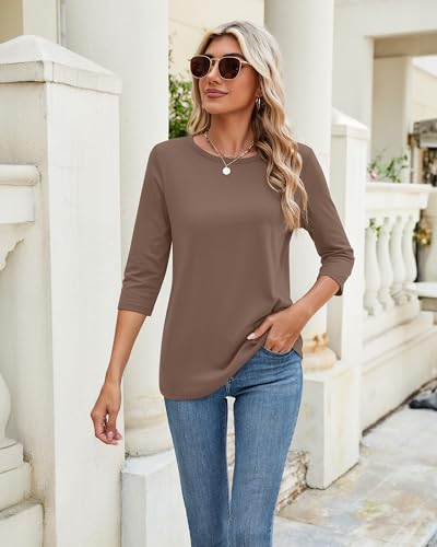 Ficerd 3 Pack 3/4 Sleeve Tops for Women Round Neck Fall Basics Casual T Shirts Trendy Loose Fit Tees
