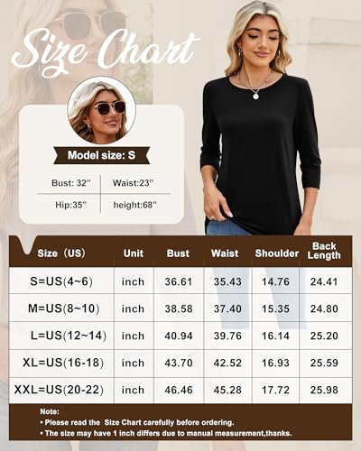 Specification: Ficerd 3 Pack 3/4 Sleeve Tops for Women Round Neck Fall Basics Casual T Shirts Trendy Loose Fit Tees