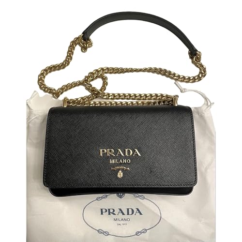 Specification: Prada Small Black Saffiano Leather Canvas with Gold Chain Straps Crossbody Bag