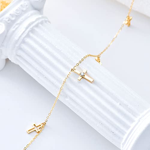 SISGEM 14K Real Gold Cross Anklet for Women,Yellow Gold Faith Cross Foot Link with Moissanite Christmas Birthday Gifts for Mom Wife 8”-10”
