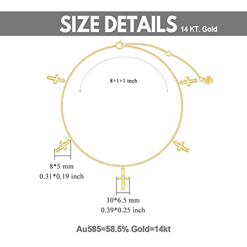Specification: SISGEM 14K Real Gold Cross Anklet for Women,Yellow Gold Faith Cross Foot Link with Moissanite Christmas Birthday Gifts for Mom Wife 8”-10”