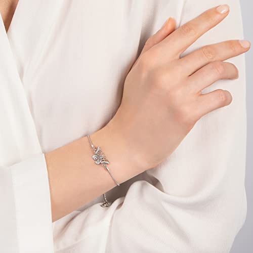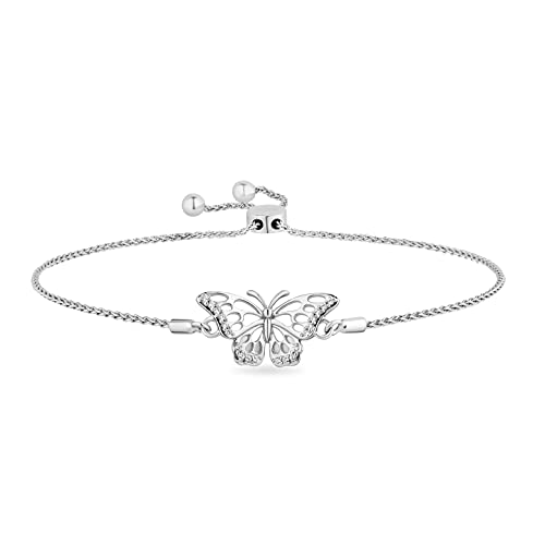 Jewelili Hallmark Fine Jewelry Sterling Silver 1/10 Cttw Natural White Round Diamond Butterfly Bolo Bracelet, 9.5″