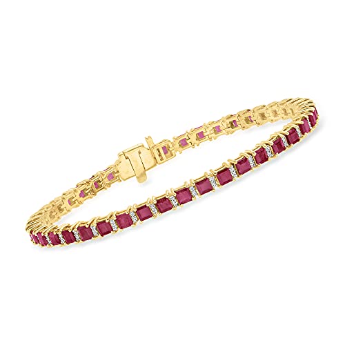 Specification: Ross-Simons 11.00 ct. t.w. Ruby Tennis Bracelet With .57 ct. t.w. Diamonds in 18kt Gold Over Sterling. 8 inches