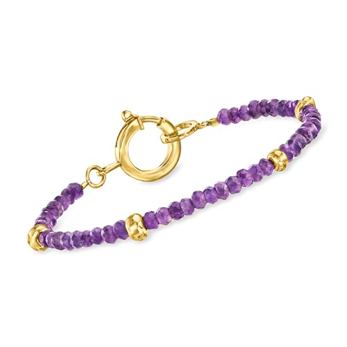 Specification: Ross-Simons 17.00 ct. t.w. Amethyst Bead Bracelet With 18kt Gold Over Sterling. 7 inches