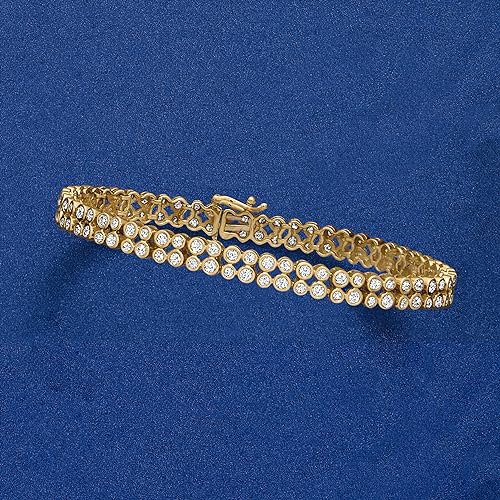 Specification: Ross-Simons 3.00 ct. t.w. Bezel-Set Diamond 2-Row Tennis Bracelet in 14kt Yellow Gold