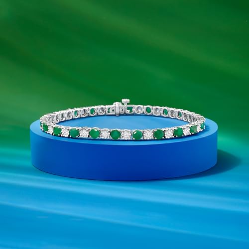 Specification: Ross-Simons 4.80 ct. t.w. Emerald and 1.00 ct. t.w. Diamond Tennis Bracelet in Sterling Silver
