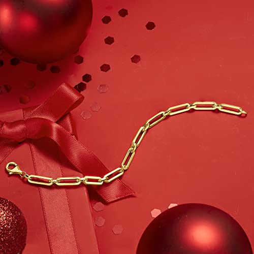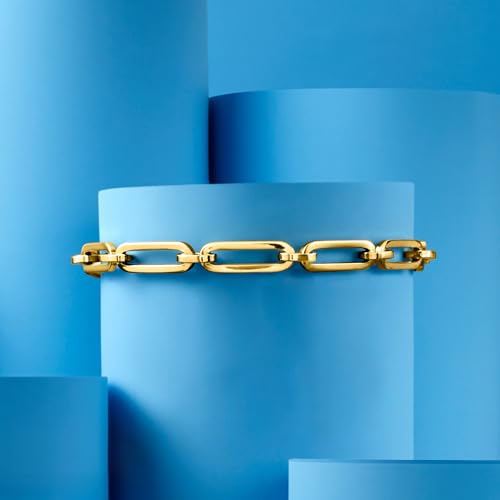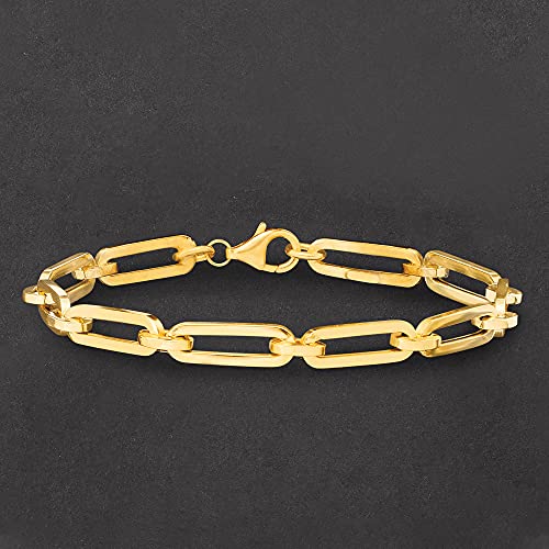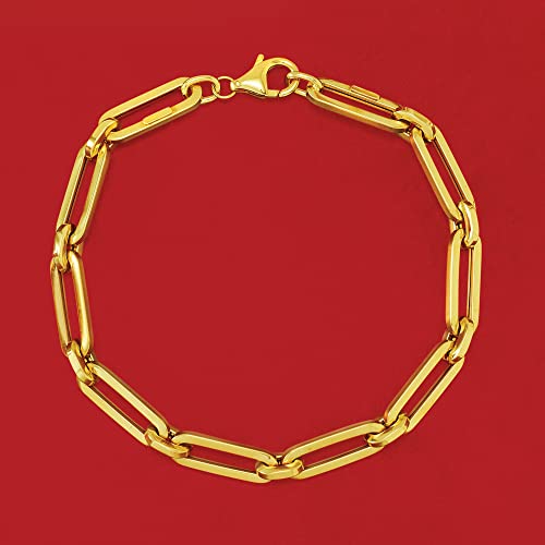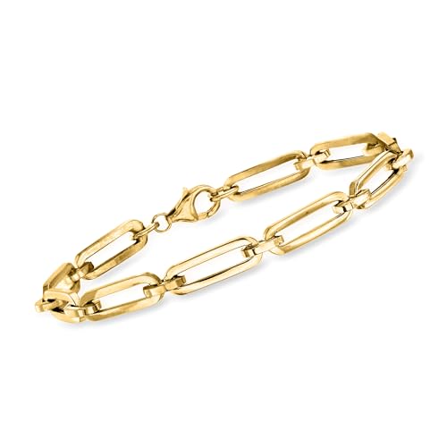 Ross-Simons Italian 14kt Yellow Gold Alternating Paper Clip Link Bracelet. 7 inches