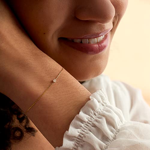 Ross-Simons is the authority on fashionable should-haves. Only a touch of sparkle! Ideal for the ones with minimalistic style personal tastes, this dainty bracelet includes a single diamond accent stationed on the center of a 14kt yellow gold cable chain. Includes 1″ extender. Springring clasp, diamond-accented station bracelet.