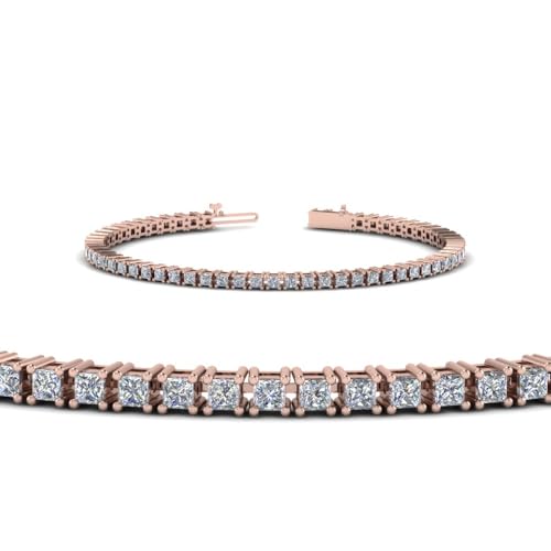 SHIV IMPEX JEWELS 4 Ct. Princess Shape White Diamond Women’s Tennis Bracelets 14k Rose Gold Plated