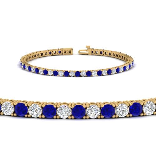 Specification: SHIV IMPEX JEWELS 6.00 Ct. Women’s Tennis Bracelets with Round Shape Blue Sapphire & White Diamond in 14k Yellow Gold Plated 925 Sterling Silver