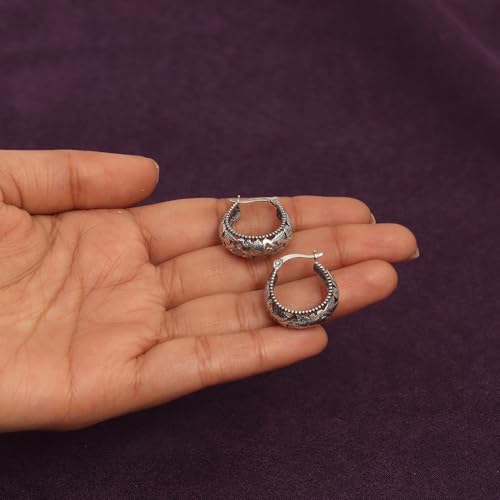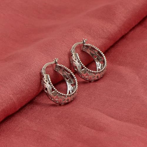Charmsy 925 Sterling Silver Filigree Hoop Earrings for Women | Lightweight Latch Back Oval Filigree Cut Hoop Earring for Women Teen