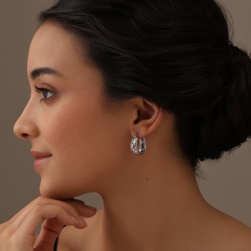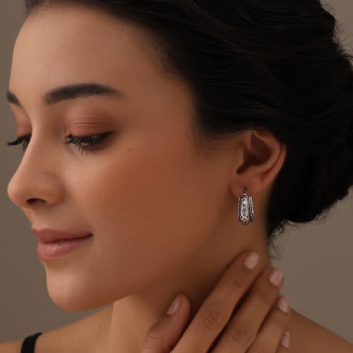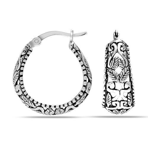 Specification: Charmsy 925 Sterling Silver Filigree Hoop Earrings for Women | Lightweight Latch Back Oval Filigree Cut Hoop Earring for Women Teen