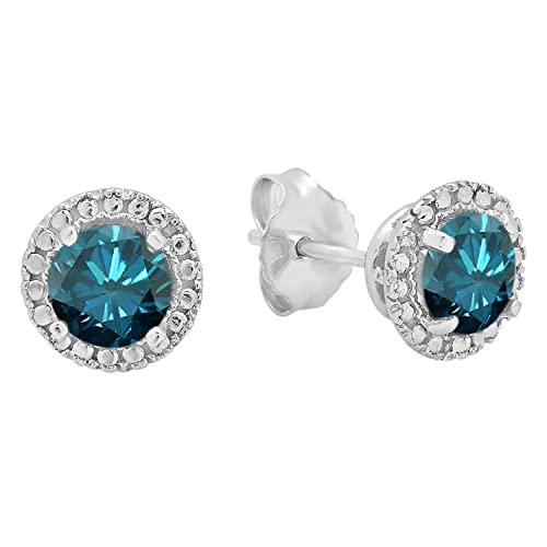 Specification: Dazzlingrock Collection 4.5mm Each Round Centre Diamond or Gemstone Surrounded with illusion Halo Stud Earrings for Women in Gold