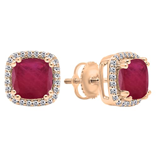 Dazzlingrock Collection 6.5mm Cushion Gemstone & Round White Diamond Halo Style Screw Back Stud Earrings for Her (Diamond 0.20 ctw, Color I-J, Clarity I1-I2) in 14K Gold