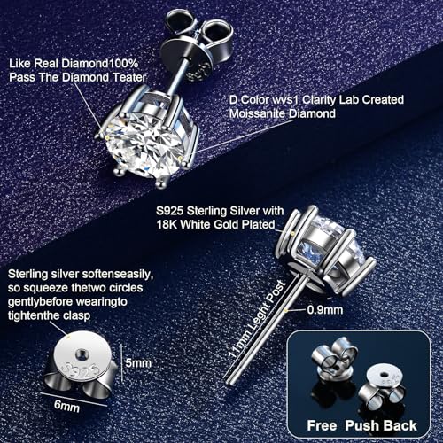 Specification: Diamond Stud Earrings for Women Men Moissanite Earrings 0.8Ct-4Ct, Gifts for Wife Mom Girlfriend Anniversary Jewelry Present for Wife, Birthday Valentines Wedding Marriage