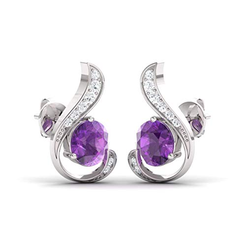 Specification: Diamondere Natural and Certified Amethyst and Diamond Earrings in 14K White Gold | 1.11 Carat Earrings for Women