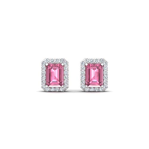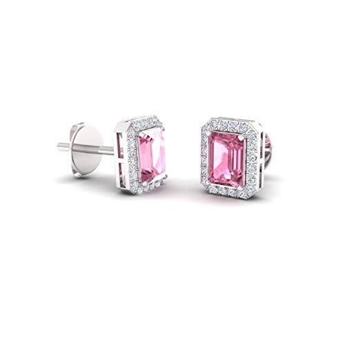 This pair of gemstone and diamond stud jewelry are made in 14k white gold. Each and every earring includes a stunning emerald cut gemstone. The gemstones have a complete weight of 0.74 carats. The gemstone are surrounded via a refined halo of spherical diamonds with a complete weight of 0.14 carats. These jewelry are stunning and stylish! An excellent gift for any time of year!