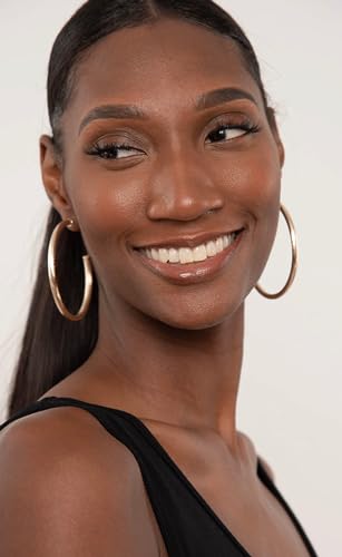 Specification: Everybody’s Favorite Large 2.5 Inch Tubular Lightweight Hoop Earrings in Brush Champagne. 18k Gold and 18k Rose Gold Metal Plated