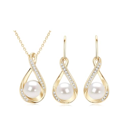 Freshwater Pearl Earrings Necklace Set for Women, Sterling Silver Pearl Jewelry with Moissanite Diamonds, Wedding Jewelry for Brides Bridesmaid