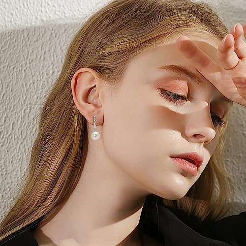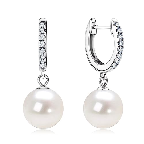 Specification: Freshwater Pearl Hoop Drop Earrings, 925 Sterling Silver Gold Hoops Earring with Sparkly Moissanite Diamond, Pearl Jewelry Gifts for Women