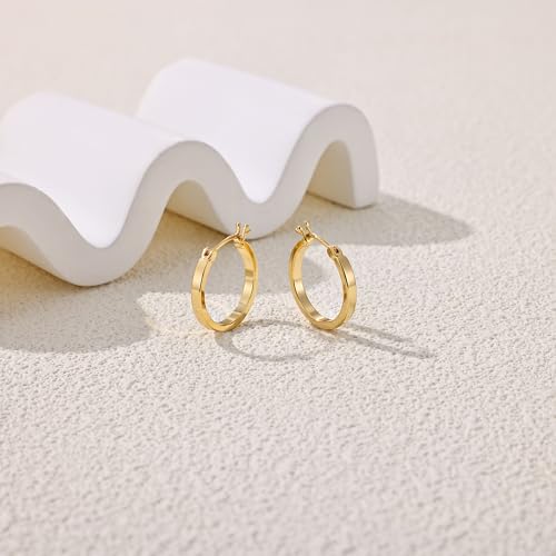 Gacimy Flatted Gold Hoop Earrings for Women 14K Real Gold Plated with 925 Sterling Silver Post