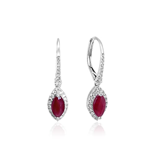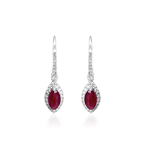 Specification: Gin & Grace 14K White Gold Mozambique Genuine Ruby Earrings with Diamonds for women | Ethically, authentically & organically sourced (Marquise-cut) shaped Ruby hand-crafted jewelry for her | Ruby Earrings for women