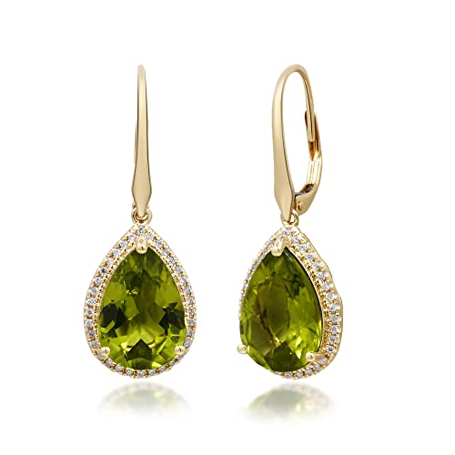 Gin & Grace 14K Yellow Gold Genuine Peridot and Diamond (I1) Earring for Women.