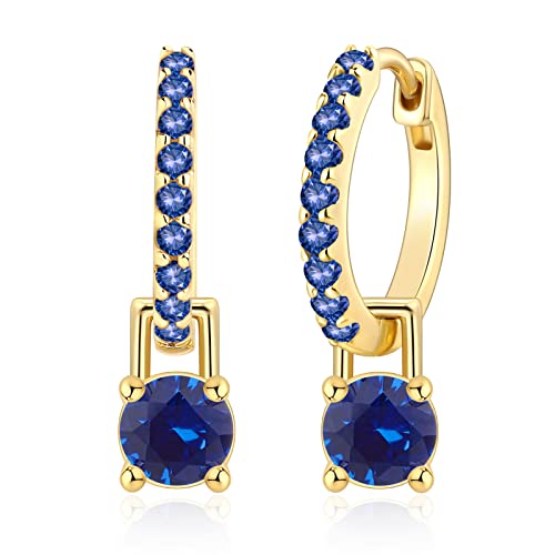 Gold Hoop Earrings for Women Month of Birth – Unique Gold Plated Womens Earrings with Birth Stone – Elegant Colorful Dainty Earrings In Jewelry Pouch – Ideal for Office, Wedding, Everyday Wear