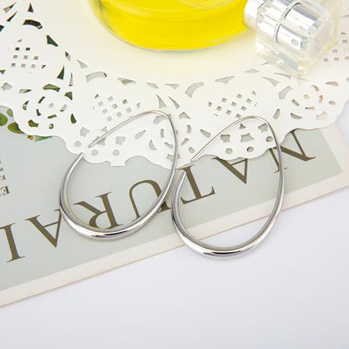 Lightweight Teardrop Hoop Earrings for Women – 14k Gold/White Gold Plated Large Oval Pull Through Hoop Earrings High Polished Statement Jewelry Gift for Women Teen Girls