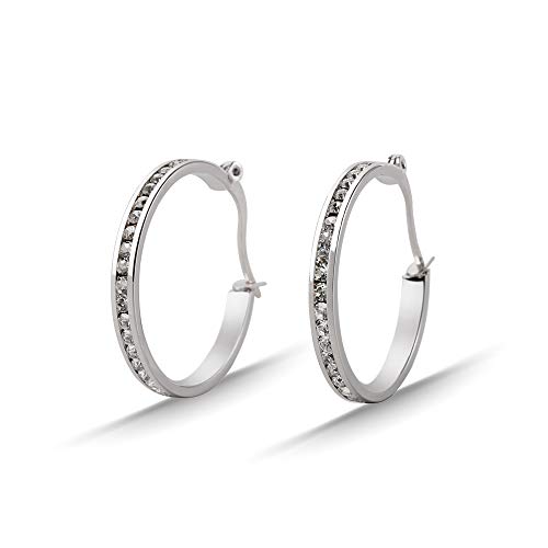 Specification: Muses Art Design Hoop Earrings for Women, 14K Gold or Rhodium plated, Crystal, Circle Hoop
