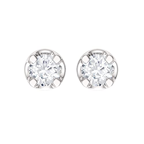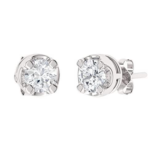 Natural and Certified Diamond Solitaire Stud Earrings in 14k White Gold | 0.25-0.50 Carat Prong Earrings for Women by Diamondere