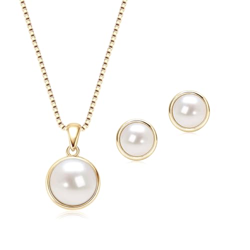 Pearl Necklace and Stud Earrings Bridal and Wedding Jewelry Set for Women, Brides, Bridesmaids Jewelry Gift for Women