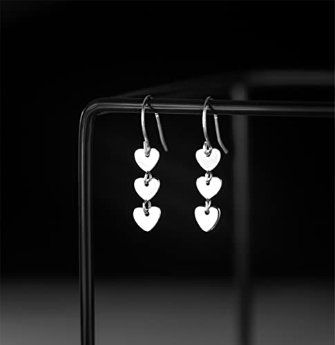 Reffeer Solid 925 Sterling Silver Love Heart Drop Earrings for Women Teens Sweet Heart Dangle Earrings Hook Earrings
