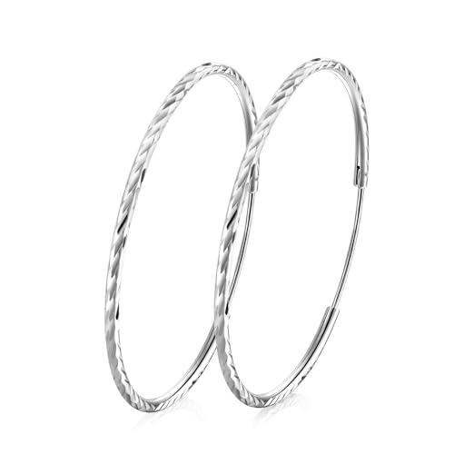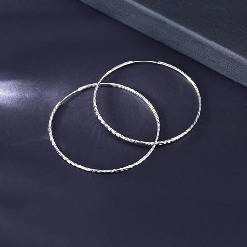 T400 925 Sterling Silver Hoops 2mm Diamond Cut Round Circle Lightweight Hoop Earrings Small and Large 25 35 45 55 65 75 mm Gift for Women
