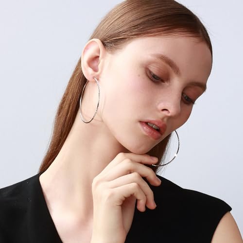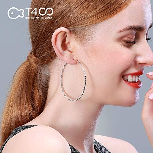 Specification: T400 925 Sterling Silver Hoops 2mm Diamond Cut Round Circle Lightweight Hoop Earrings Small and Large 25 35 45 55 65 75 mm Gift for Women