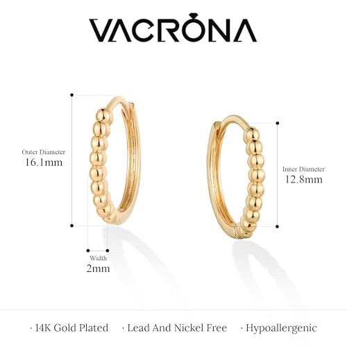 Specification: VACRONA Gold Hoop Earrings Huggie Earrings for Women 14k Gold Plated Small Hoops Green Snake Shell Beaded Earrings Hypoallergenic Jewelry Gift