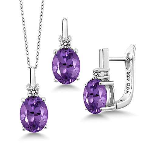 Specification: Gem Stone King 925 Sterling Silver Purple Amethyst and White Diamond Pendant and Earrings Jewelry Set For Women (4.87 Cttw, Gemstone Birthstone, with 18 Inch Silver Chain)