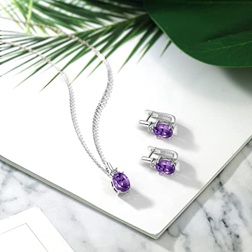 Gem Stone King 925 Sterling Silver Purple Amethyst and White Diamond Pendant and Earrings Jewelry Set For Women (4.87 Cttw, Gemstone Birthstone, with 18 Inch Silver Chain)