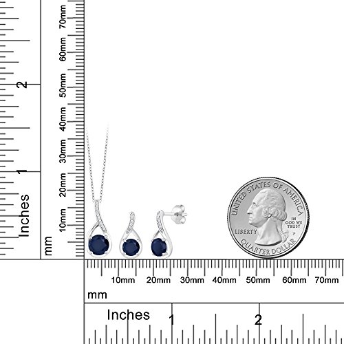 Specification: Gem Stone King 925 Sterling Silver Round Blue Sapphire and White Diamonds Pendant and Earrings Jewelry Set For Women (2.34 Cttw, Gemstone Birthstone, with 18 Inch Silver Chain)