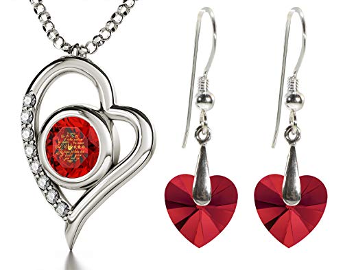 Specification: NanoStyle 925 Sterling Silver I Love You Heart Necklace and Crystal Dangle Earrings Jewelry Set for Women Crystal Love Pendant is Pure Gold Inscribed in 12 Languages in Miniature Text, 18″ Rolo Chain