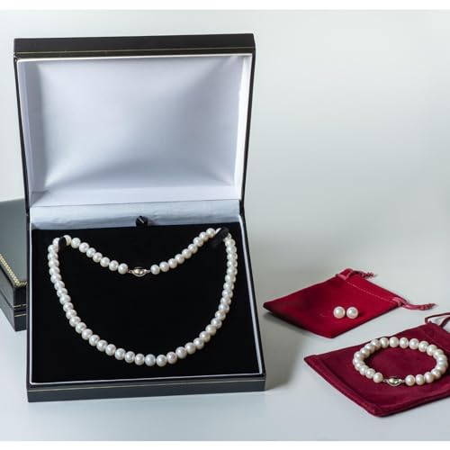 Pearl Romance’s beautiful pearl necklace bracelet and stud earrings set is made with probably the most desirable ROUND formed cultured freshwater pearls. The pearls are round to the attention. Pearl surface is frivolously blemished. We have now all sizes of pearl from 6mm to 12mm; all lengths from 14”-36” in white and black color. What length shall you select? Merely use a string to wrap around your neck to the specified length, then add half an inch. Buy this pearl necklace these days!