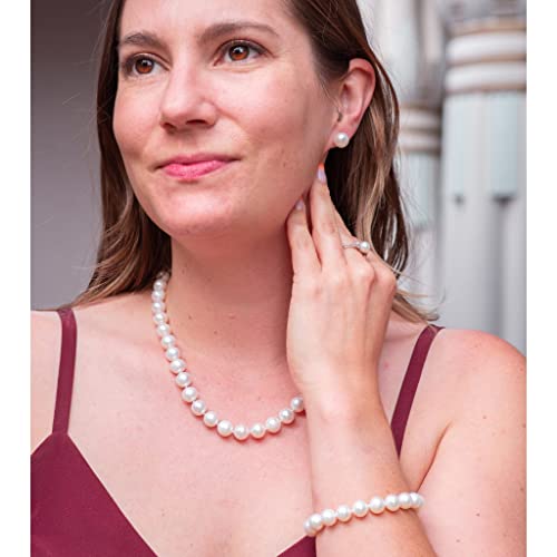 ROUND Real Pearl Necklace Set for Women Bracelet Stud Earrings Ivory Beige Cream White Pearl Jewelry Set Men Cultured Freshwater Wedding