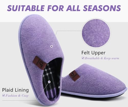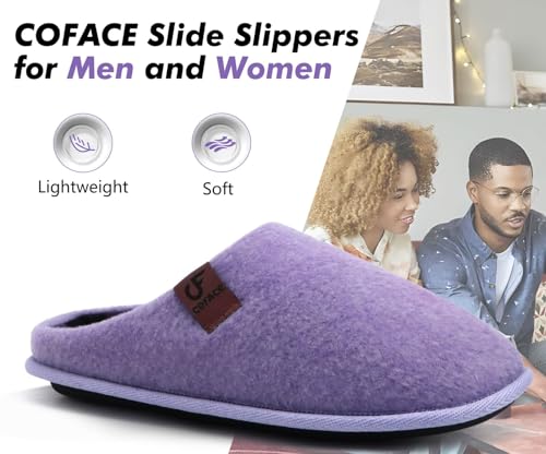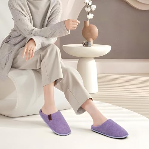 COFACE Unisex Mens Womens Cozy Memory Foam Scuff Slippers Casual Slip On Warm House Shoes Indoor/Outdoor Felt Sandal Slippers size 6.5 Purple