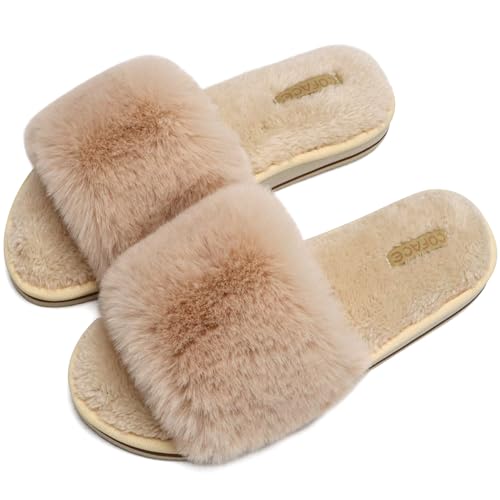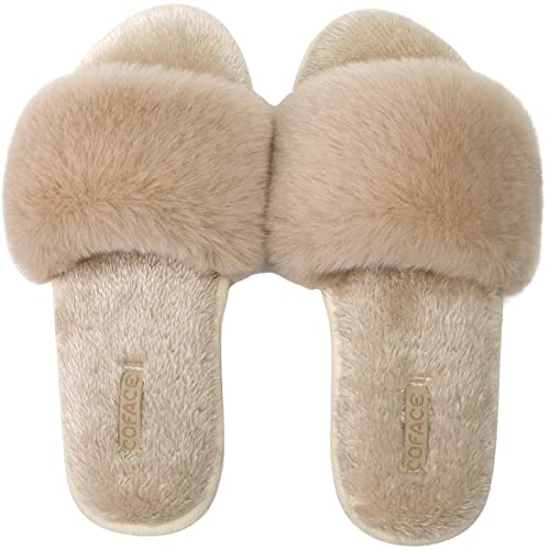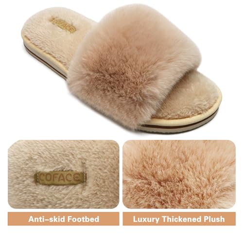 Specification: COFACE Womens Sliders Plush House Slippers Flat Sandals For Women Memory Foam Fuzzy Open Toe Slippers With Arch Support Anti Skid Ladies Slip On Fur Slide Slippers House Shoes Mules Indoor Outdoor