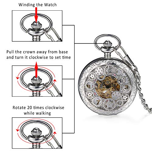 Specification: Avaner Steampunk Retro Half Hunter Copper Gear Skeleton Hand Wind Mechanical Roman/Arabic Numeral Analog Display Pocket Watch with 14″ Chain
