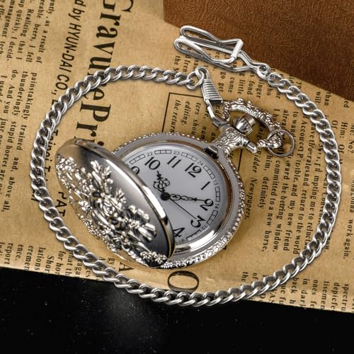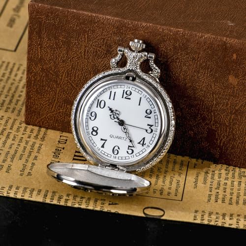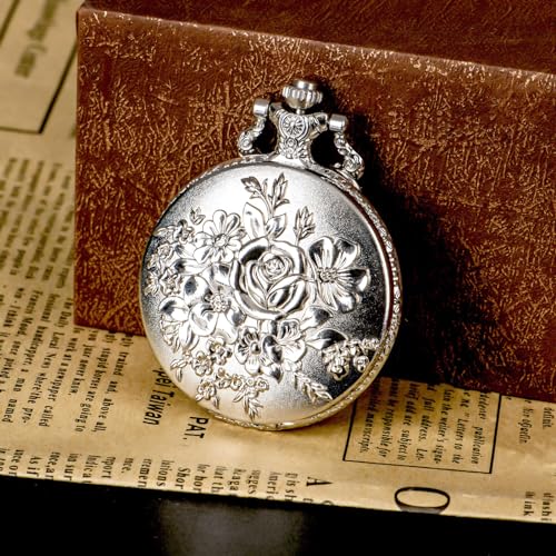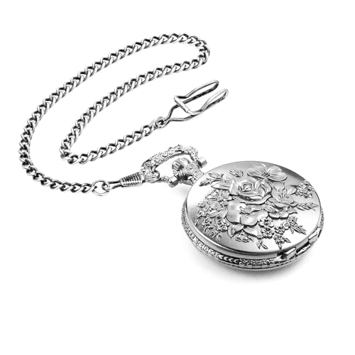 Specification: BOSHIYA Retro Flower Openwork Cover Quartz Pocket Watch with Chain Half Hunter Pocket Watches for Women with Box, for Mother’s Day